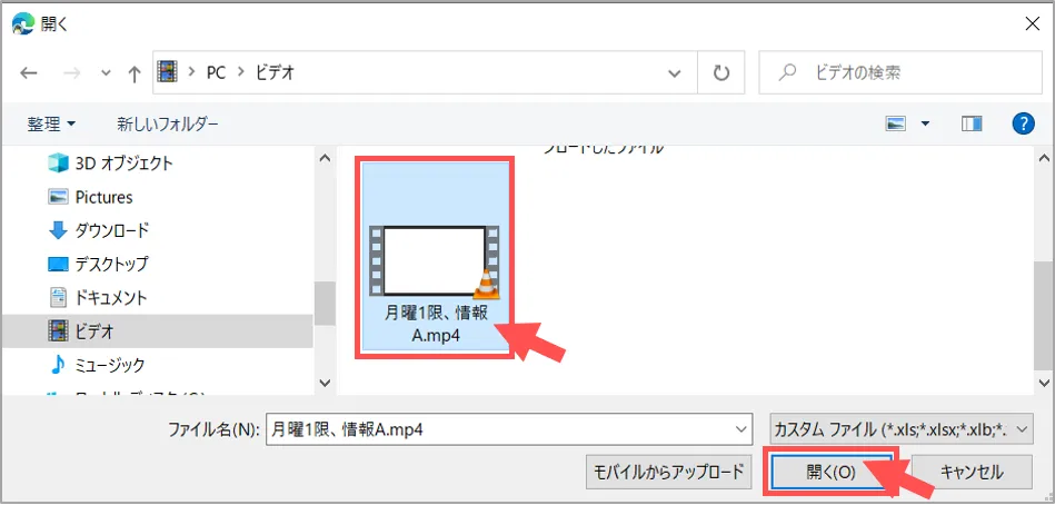 1. ファイルを選択し「開く」をクリック
