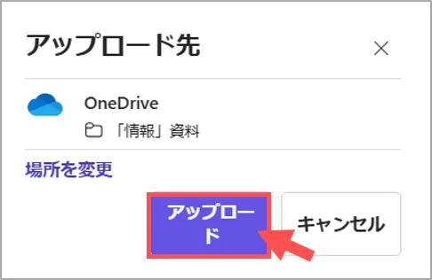 1. 「アップロード」をクリック